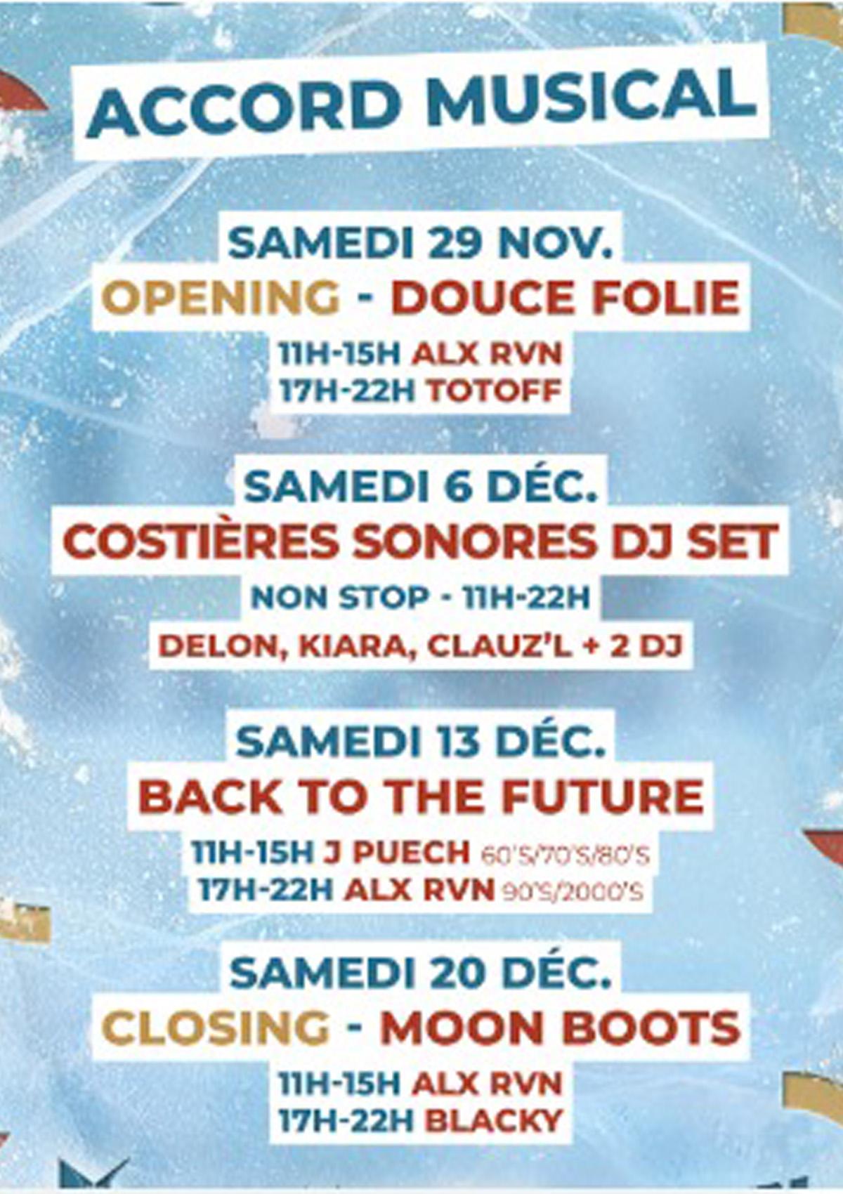 From 29/11 to 20/12/2025 on Saturday between 11 am and 10 pm.