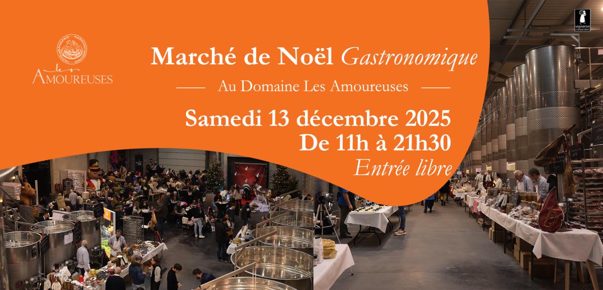 Le Domaine Les Amoureuses vous invite à son 7e Marché de Noël Gastronomique : dégustations, producteurs locaux, animations familiales, show culinaire, et tombola solidaire. Une journée conviviale et gourmande.