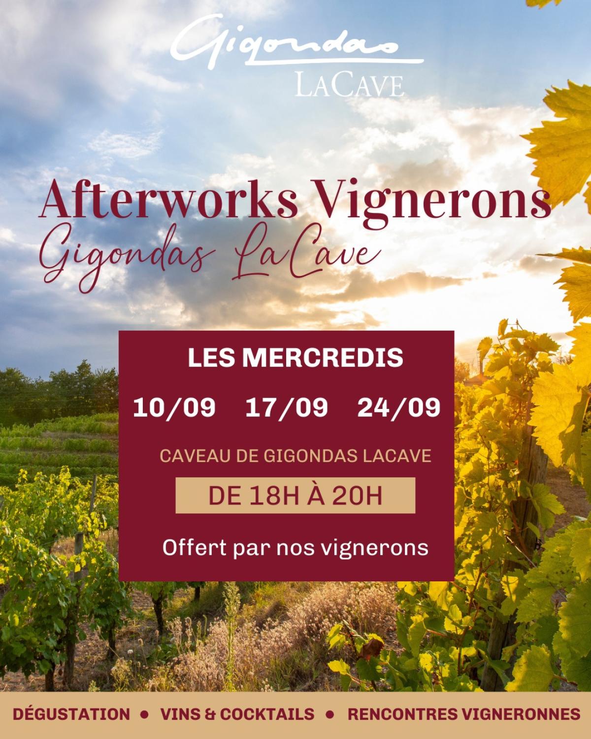 Envie de finir la journée en beauté et de partager un moment convivial autour du vin ? Venez au caveau de Gigondas LaCave pour nos afterworks vignerons, un rendez-vous unique et offert par les vignerons eux-mêmes.