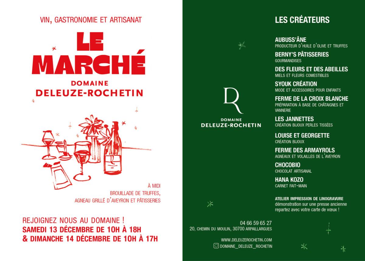 À l'occasion des célébrations de fin d'année, le domaine Deleuze Rochetin organise la troisième édition de son Marché de Créateurs. Nous vous invitons à venir partager un moment convivial et découvrir le travail des artistes et artisans exposés à l'étage.