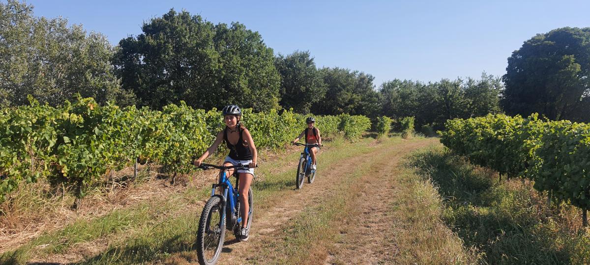Balade à vélo électrique accompagnée par Simon Defour, guide-moniteur, agrémentée d'une dégustation de vin au Domaine de la Croix Blanche en présence des vignerons.