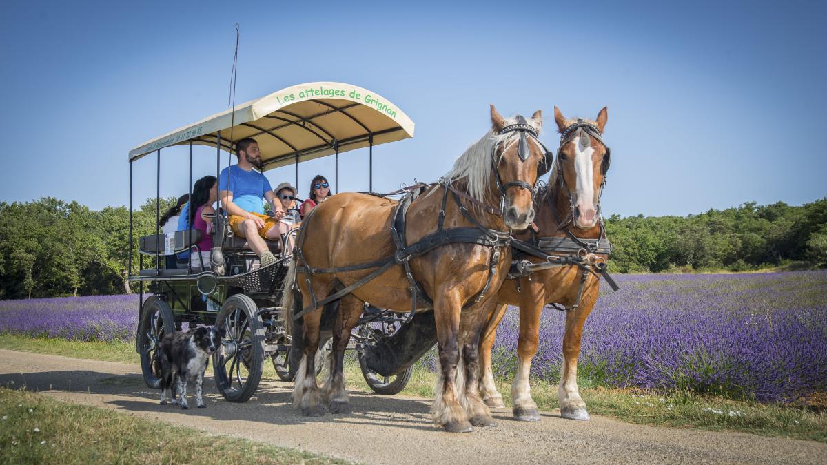 Replongez-vous en enfance, lors d'une balade en calèche ! Accompagné de Steve, au rythme relaxant des chevaux, découvrez nos parcelles de vignes, champs de lavandes et de truffières.