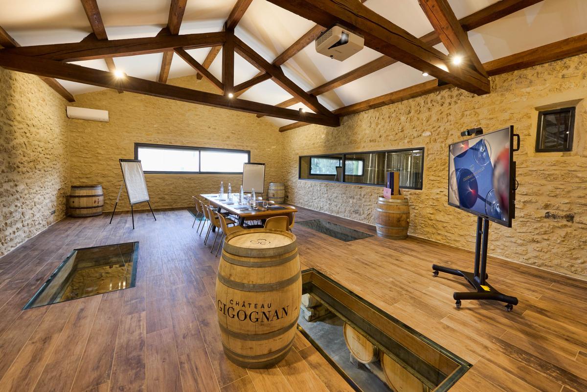 Laissez-vous séduire par le magnifique cadre du Château Gigognan... Vous souhaitez organiser un cocktail, un déjeuner, un anniversaire ? La salle avec vue panoramique sur le chai et la cuverie est tout à fait adaptée.
