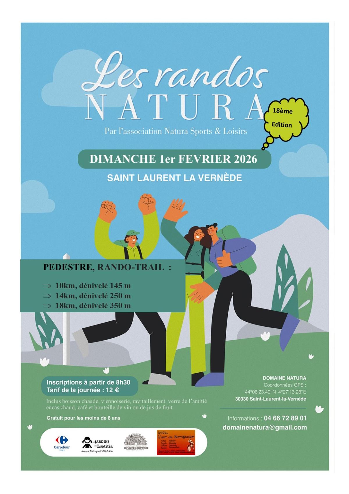 Les randos Natura reviennent ! Au programme, des marches pédestres, rando-trails sur de nouveaux parcours, trois distances, 10, 14 et 18 km, toujours la même ambiance et le même contenu. Inscriptions sur place à partir de 8h30.