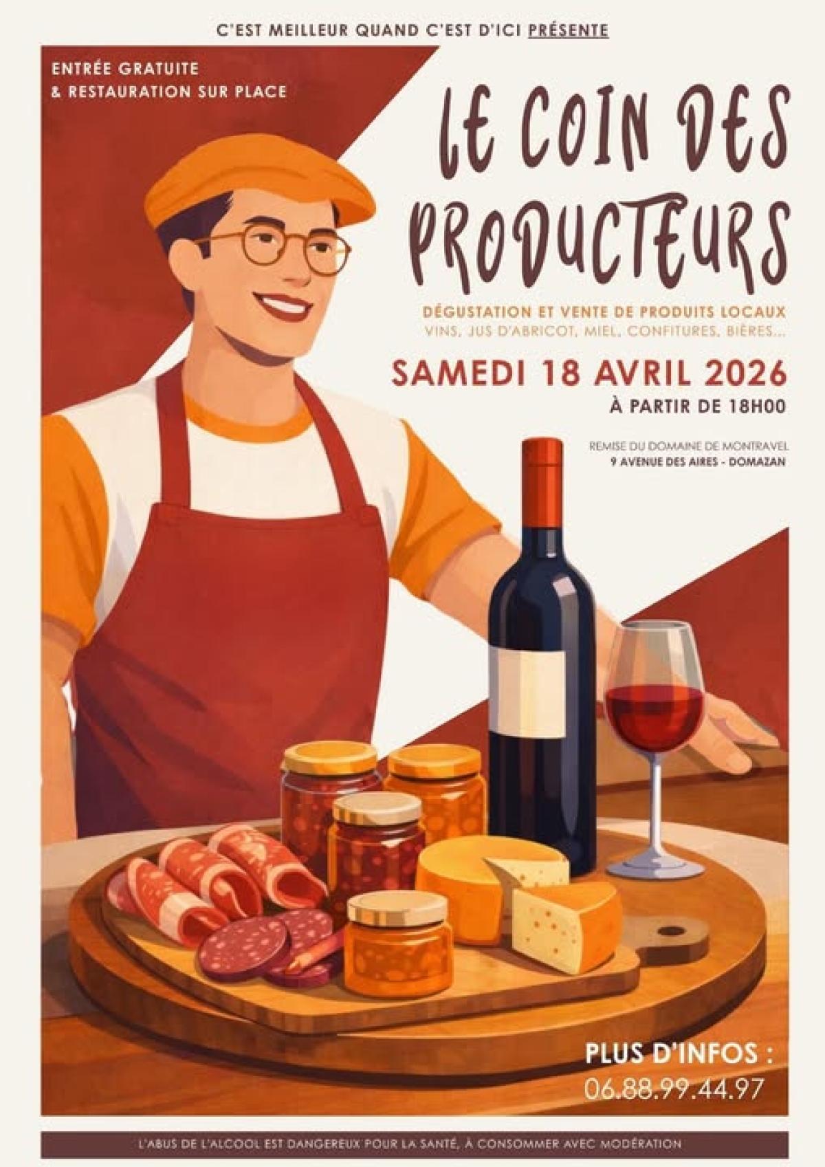 Rendez-vous avec un rassemblement de producteurs de Domazan (vin, bière, miel, nectar et confiture d'abricots). Ils présenteront leurs produits et partageront avec vous toute la richesse de l'agriculture locale. Restauration sur place.