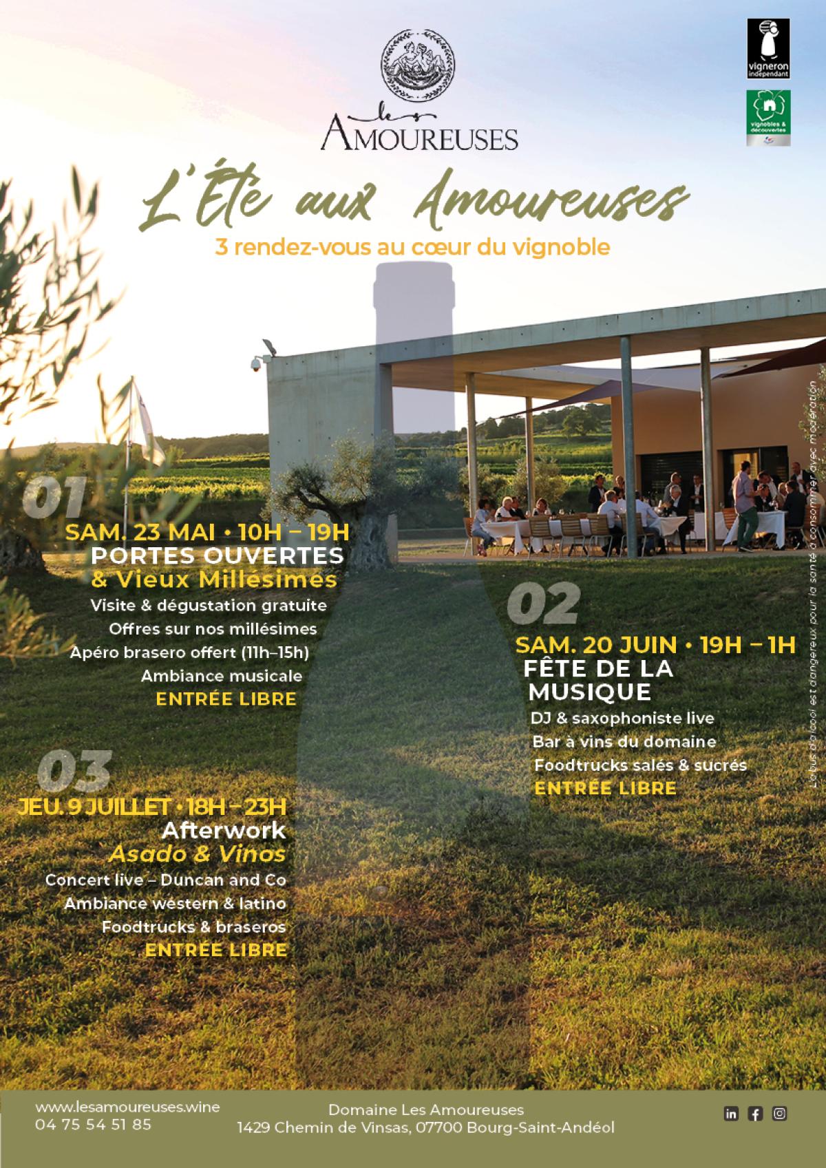 Afterwork ambiance Amérique latine au Domaine Les Amoureuses : concert Duncan and Co, grillades argentines au brasero, foodtrucks et vins du domaine.