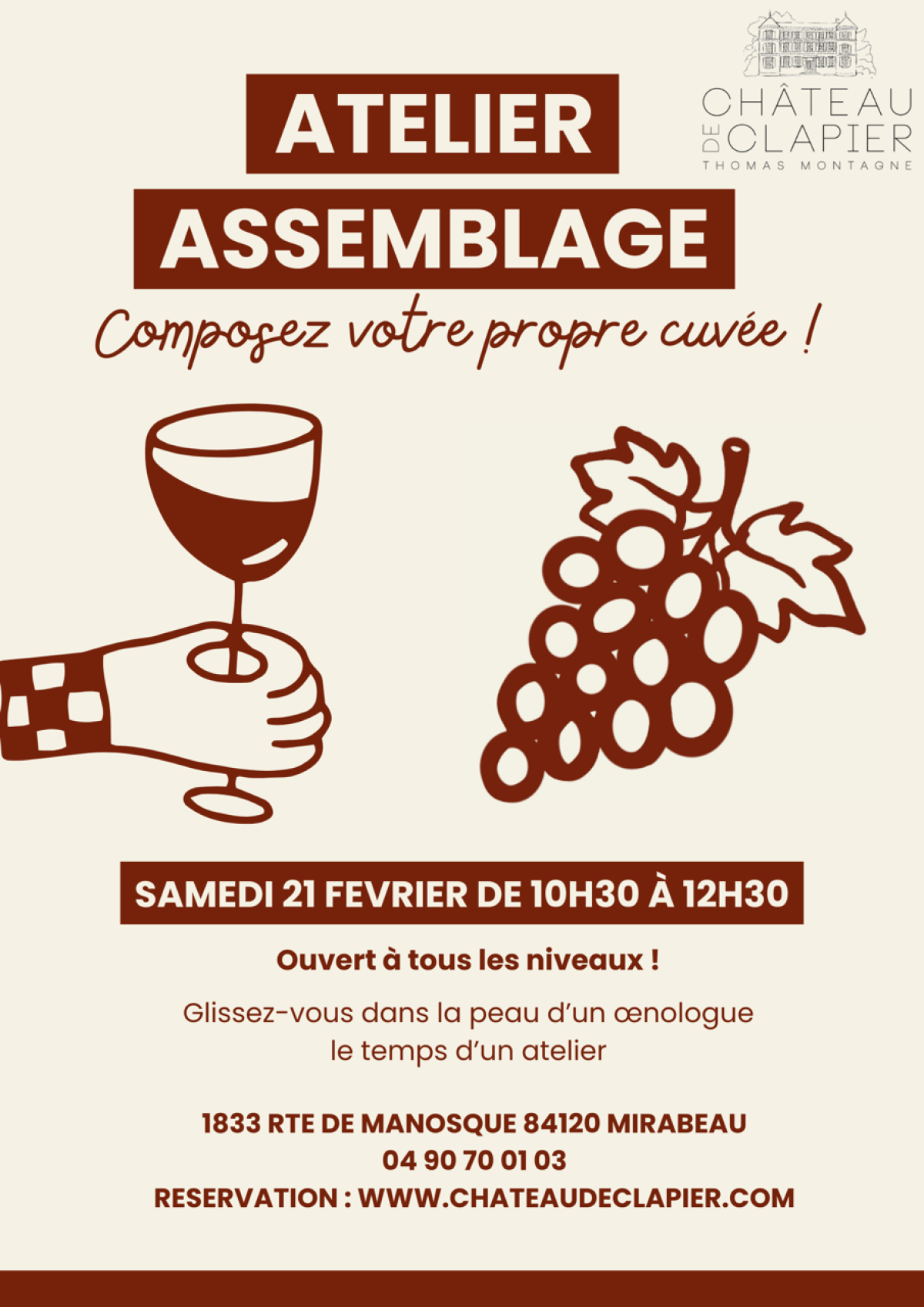 Atelier assemblage oenologique au Château Clapier à Mirabeau