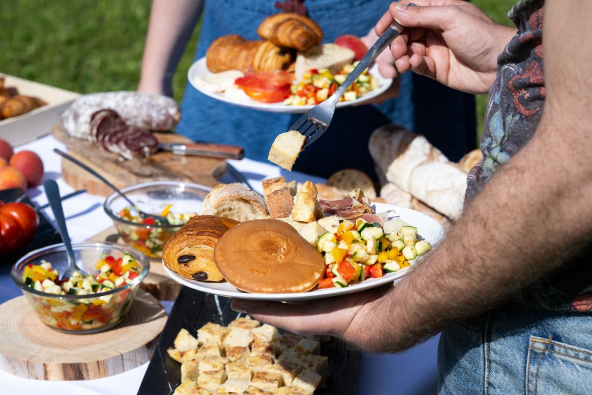 Tarif comprenant les boissons (vins locaux, café, jus de fruits) ainsi que le buffet sucré/salé élaboré par le restaurant.