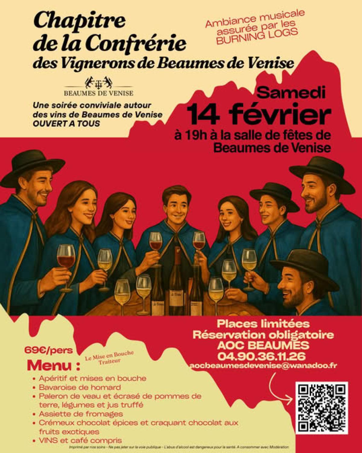 Le Chapitre de la Confrérie des Vignerons de Beaumes-de-Venise vous ouvre ses portes ! Une soirée conviviale autour de nos vins d'exception, un menu raffiné et une ambiance musicale garantie, assurée par les Bruning Logs.