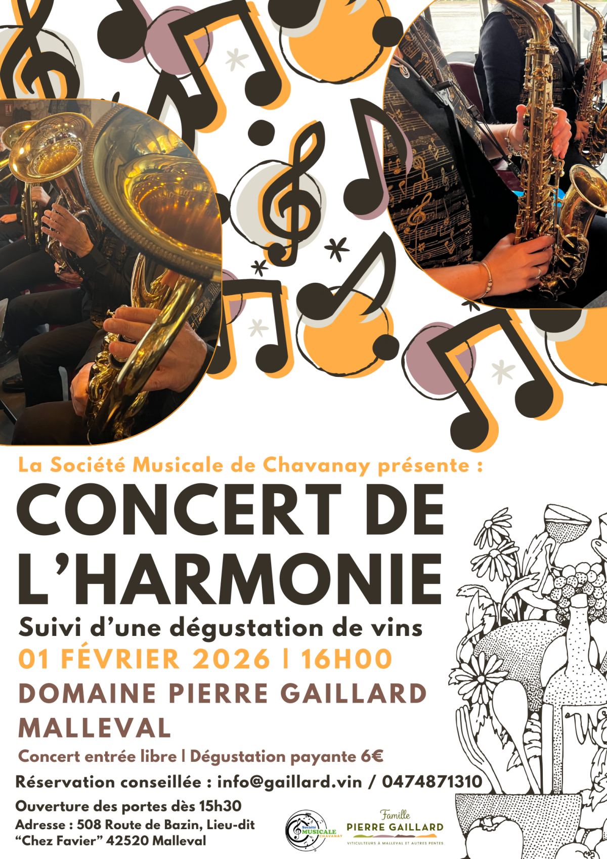 La Société Musicale de Chavanay présente le concert de l'Harmonie au Domaine Pierre Gaillard, suivi d'une dégustation de vins. Réservation conseillée à info@gaillard.vin ou au 04 74 87 13 10.