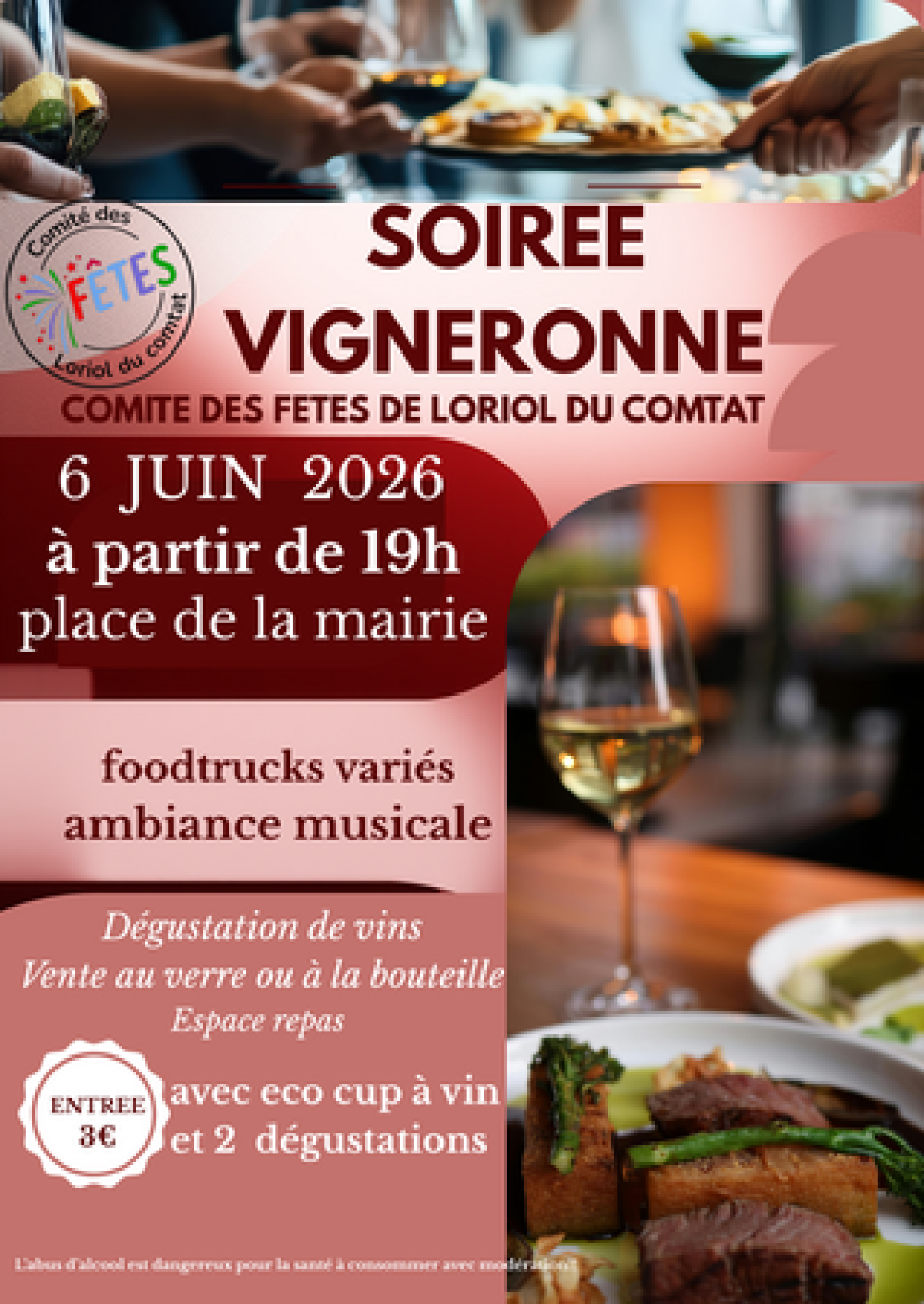 Vivez une soirée vigneronne à Loriol-du-Comtat ! Dégustations, foodtrucks et ambiance musicale vous attendent au cœur du village. Un moment convivial pour savourer les vins locaux et l’art de vivre provençal.