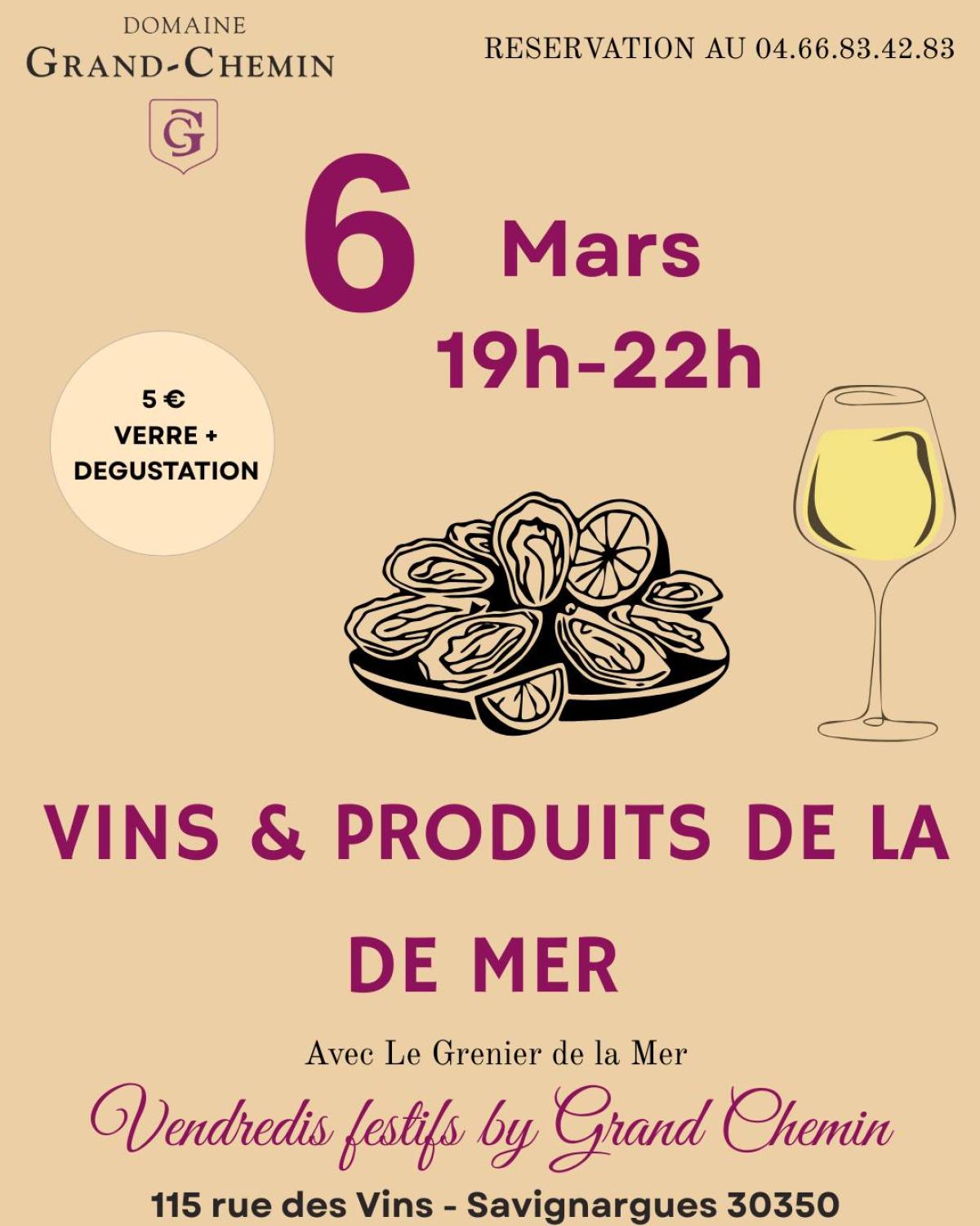 Soirée Vins & Produits de la Mer Le vendredi 6 mars, nous vous donnons rendez-vous pour une soirée gourmande et festive autour des produits de la mer !